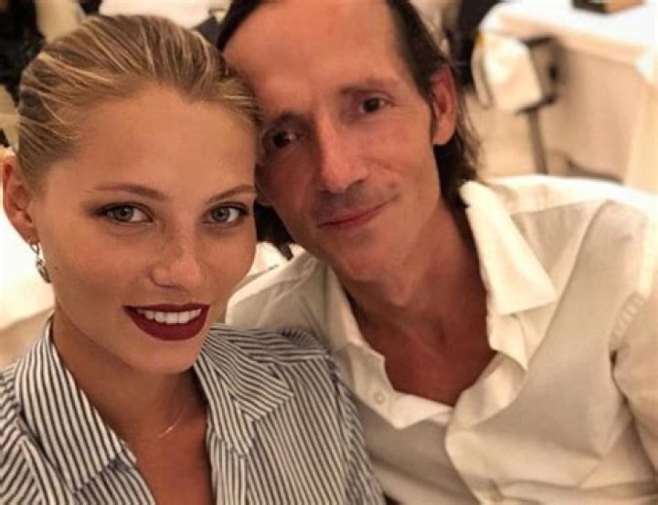 - He sports a brushed-up hairstyle.